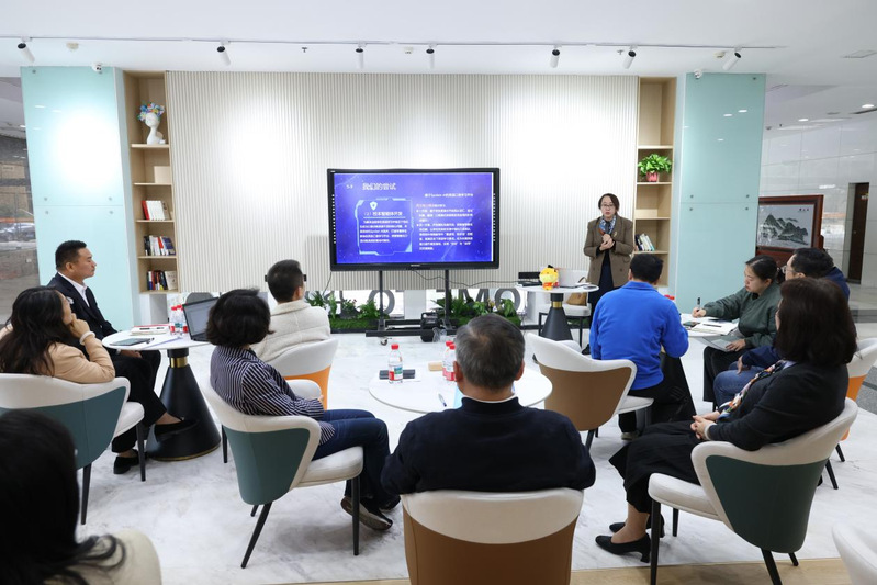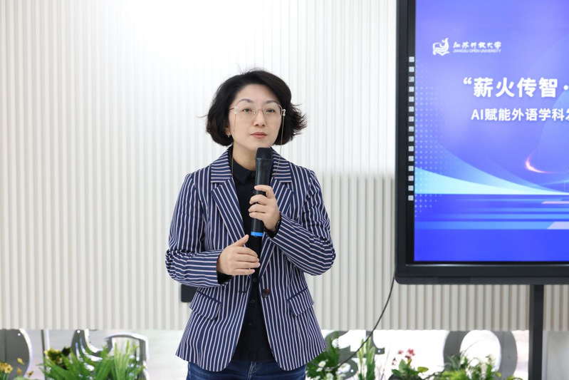 在专题分享环节,孙雁冰作了题为《AI赋能外语学科发展——教学科研成果培育的新视域与新向度》的专题报告。她以人工智能发展态势为切入点,系统梳理了从技术内核到教育应用的逻辑链条,重点围绕外语学科如何回应智能时代的挑战与机遇,介绍了外语教学成果内涵的演进与重构、创新模式的实践探索及其团队的具体尝试。她以自主研发的英语口语学习平台为例,生动解析了人工智能赋能教学创新的实现路径,既有理论前瞻,又紧密贴合教学实际,为外语学科在人工智能时代的融合发展提供了清晰、可行的新思路与新路径。